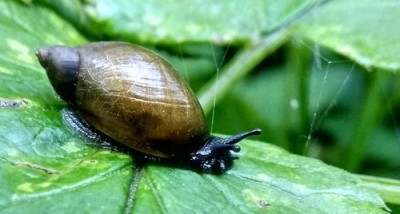 Прошу проверить определение. Предполагаю, что это Succinea putris, но уверенности нет. Высота раковины около 15 мм. Воронежская нагорная дубрава, 04.08.2020. Сырая лощина, на листе сныти рядом с ежевикой. В "Кадастре беспозвоночных животных Воронежской области" (2005) указывается пять видов Succineidae: Oxyloma elegans, O. sarsii, Succinea putris, S. preifferi, S. oblonga.