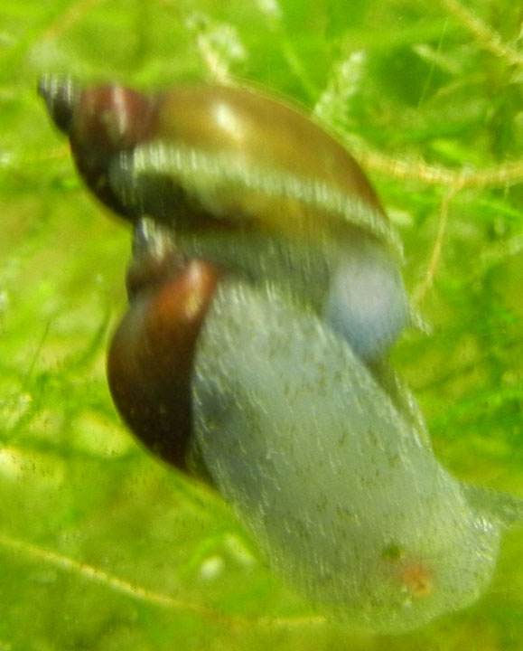 По фотографии трудно сказать, размер животного неясен. Я бы начал с предположения, что это Lymnaea (Radix) rubiginosa.