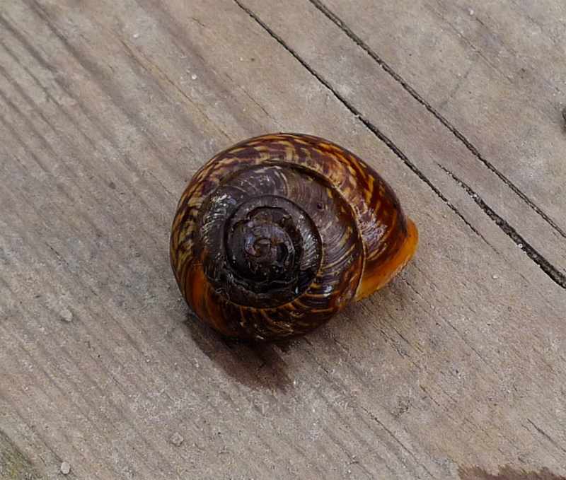 Arianta arbustorum (L., 1758) Для сравнения... Кстати, вот с каких позиций нужно фотографировать. Не местная. Похоже, надвигается на нас с Запада  Хотя, возможно, наоборот, из Москвы ее туда завезли (а в Москву уже много "гостей" интродуцировали).