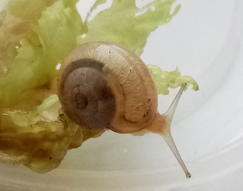 Добрый день. Помогите определить вид, пожалуйста. Купили мы эту улитку случайно с зеленью в магазине. Откуда привезли зелень, не известно. Даже примерно не знаем с каких краев зверь приехал. Есть мысль выпустить в природу, но вдруг улитка сильно южная, а у нас зимы с морозами. Да и в какую именно природу выпускать не понятно. Любит воду и тень, живет в верхней части банки, на дно спускается только поесть, днем спит, ночью шастает. И второй вопрос. Вчера утром зарылся в землю, хотя раньше к земле совсем не проявлял интерес. Ночью не вылазил. Воды и еды хватает, тепло, партнера нет, изменений во внешности и поведении не было заметно. Чего вдруг ему закопаться летом вздумалось?