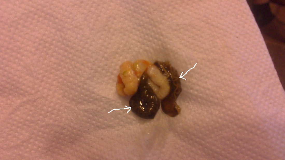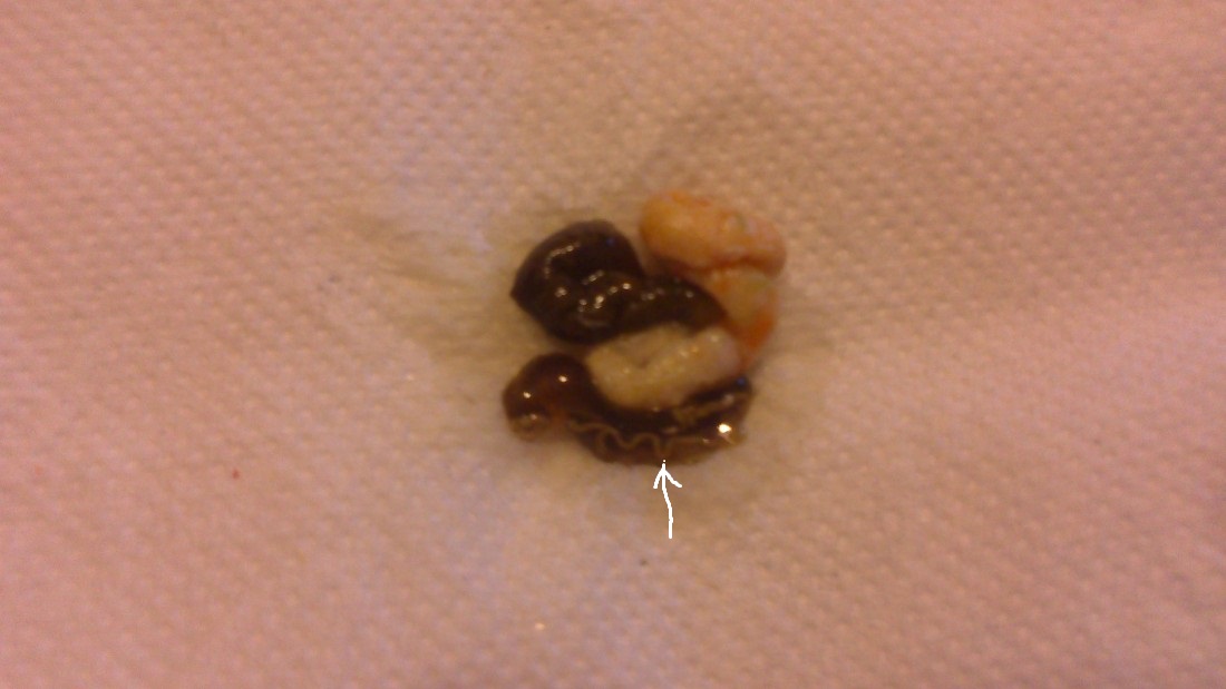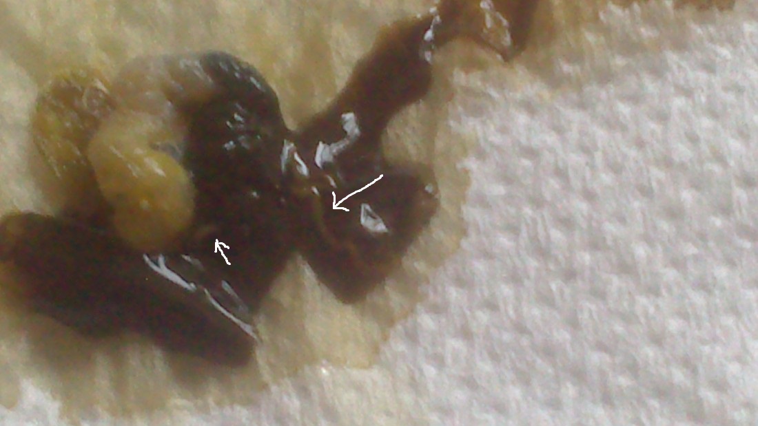 Вот что мне удалось сфотографировать, стрелочкой отмечено то, что мне кажется червяками Вложение: