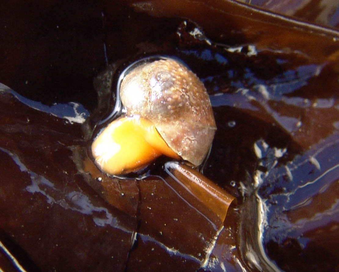 поднята на слоевище ламинарии, где и сфотографирована