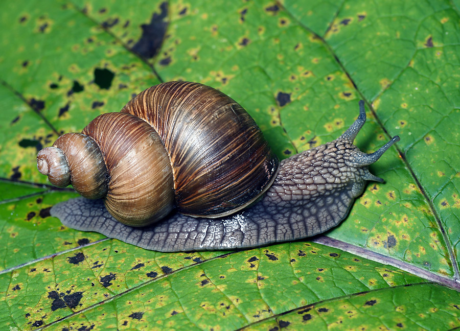 Среди живущих на дачном участке виноградных улиток попался такой вот экземпляр.