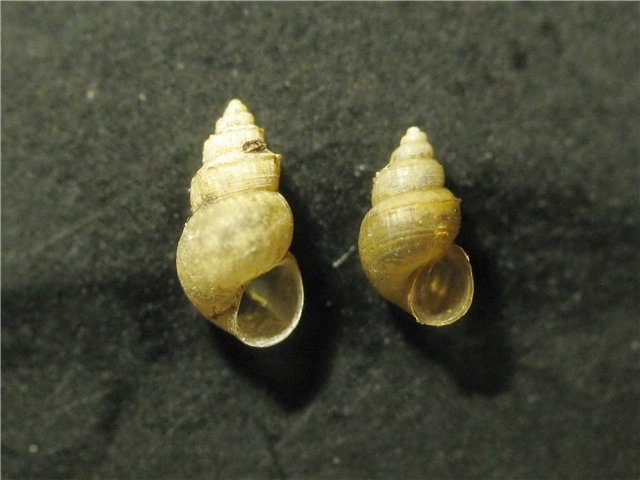 Недавно нашел кучу мелких гидробиид на корнях водяных геоцинтов. Размер раковин 50 - 100 мм. Просматривается четкая осевая и спиральная структура. Вероятно это Северо - Американский вид Pyrgyphorus platyrachis (Thomson, 1968).