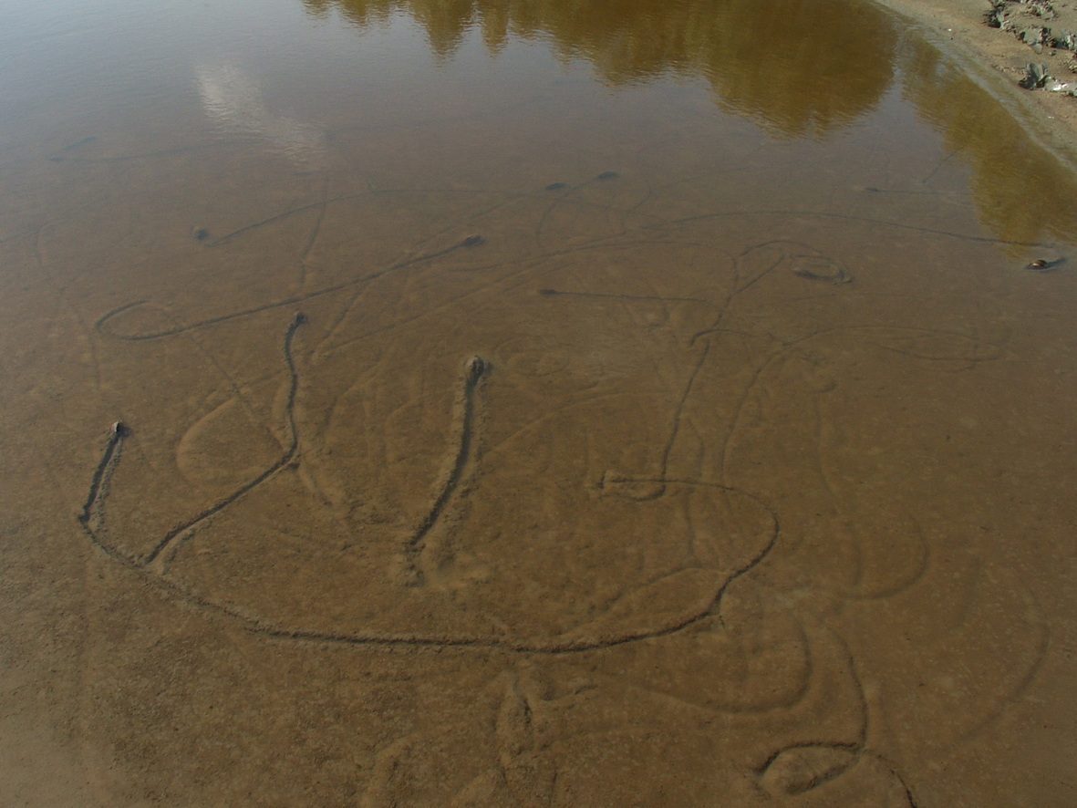 Ходы речных беззубок на илистом дне. Снято 18.08.2009. Место действия - курья р. Иртыш ниже речного порта г. Тобольска.