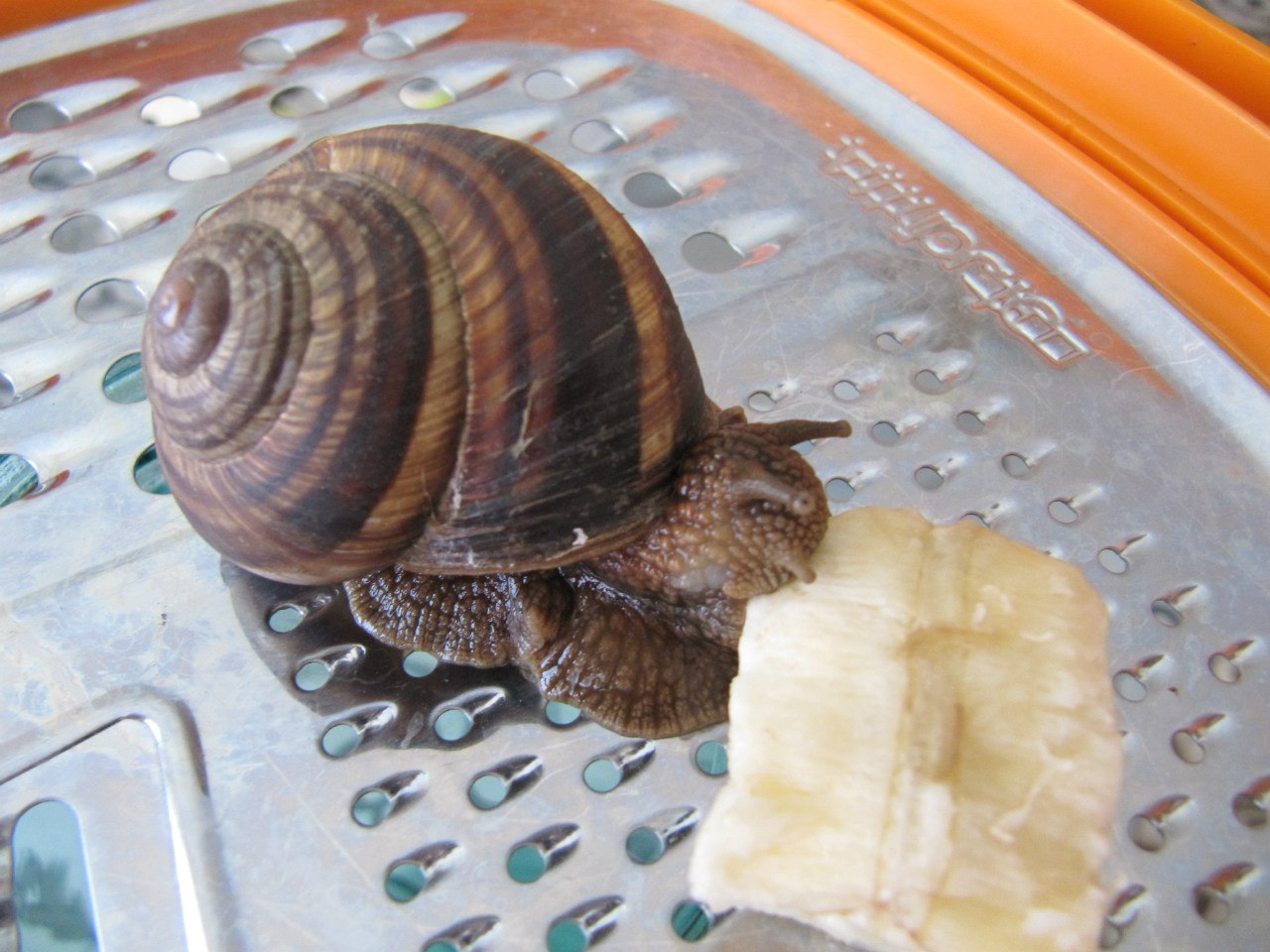 Helix Pomatia кушает банан. Поймана на Кавказе.