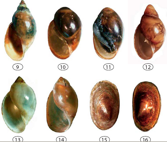 С физеллами ситуация следующая: в Европе отмечены четыре вида: acuta, heterostropha, gyrina и integra. В более северных районах они живут преимущественно в искусственных водоемах, где потеплее, а вот в южных районах: юг Франции, Италия, Испания, Балканы, прибрежные региона Понто-Каспия заселили большинство водоемов. Это одни из самых "старых" вселенцев в Европу. Другой вопрос, что, скорее всего вселялись они в разное время и в разных местах совершенно независимо. Но расселяются они очень быстро, по-видимому с помощью птиц, кабанов, при наводнениях и т. д. Скажем в Крыму их можно найти практически в любой речке (там встречаются интегра и гетерострофа). Акута от остальных отличается в первую очередь огромным и очень вздутым последним оборотом - иногда до 90 % высоты раковины - вот на картинке: 9-гетерострофа 12 - интегра 13 - акута