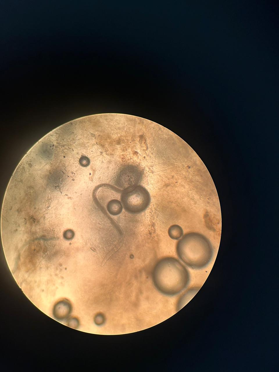 Здравствуйте! Помогите, пожалуйста, определить вид личинки нематоды. Нашли их в кишке виноградной улитки. Улитку собрали в Новгородской области, около водоема. Прожила в домашних условиях около трёх недель. Жила не одна, улиток было много (порядка пятнадцати).