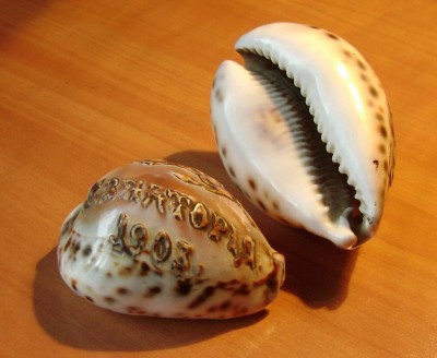 Вот решил вложить свою лепту в тему. Наверно встретить раковину ципреи в качестве коллекционного экземпляра не так трудно. Вот и у меня в семейных запасниках есть парочка, причем с резьбой. Можно ли определить ее вид, и узнать, насколько широко процветал промысел этих моллюсков ранее (см. надпись).